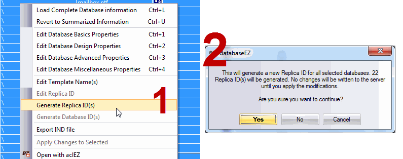 Another handy feature in databaseEZ is its ability to assign new Replica IDs to any number of databases selected in the grid. When working locally, you also have the ability to generate Database IDs in a similar manner.