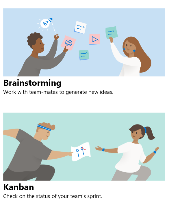 Microsoft 365 Whiteboard provides several preconfigured boards, or templates, that you can start from. Here is the list of the various available templates: