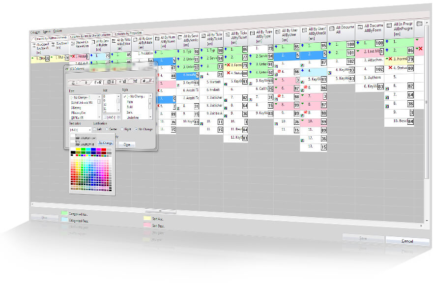 Quickly identify similar and identical columns across all designs within a database and modify any of their properties (such as font color) en-masse, without the time consuming, design-by-design process.